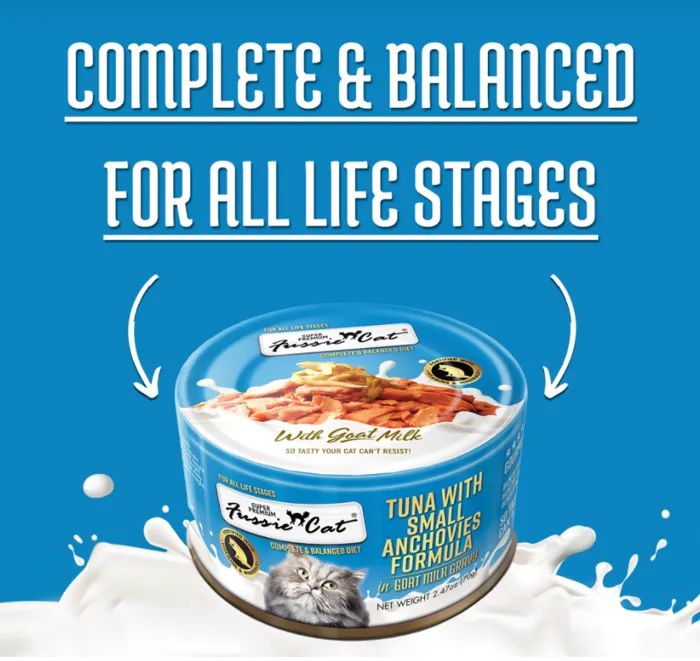Introducing our newest line to the Fussie Cat family, Fussie Cat with Goat Milk! Our new line of gourmet cat food features delicate, tender bites of tuna with a creamy goat milk gravy to make up a complete and balanced diet for your carnivore’s connoisseur! Fussie Cat with Goat Milk is rich in DHA to help support healthy vision and brain development and is fortified with vitamins and minerals.