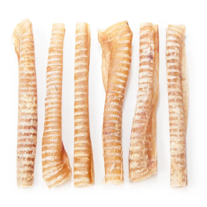 Trachea are a durable, crunchy chew that dogs love due to the higher fat content (compared to a bully stick). Trachea are known to be a natural source of glucosamine, which may help preserve joint health and mobility. The trachea can also be stuffed with anything from canned food to commercial raw food, and then frozen.