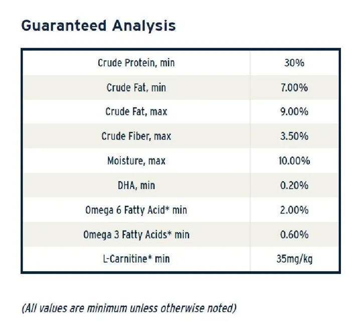 | Crude Protein | 30.0% min |