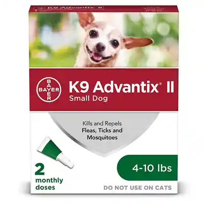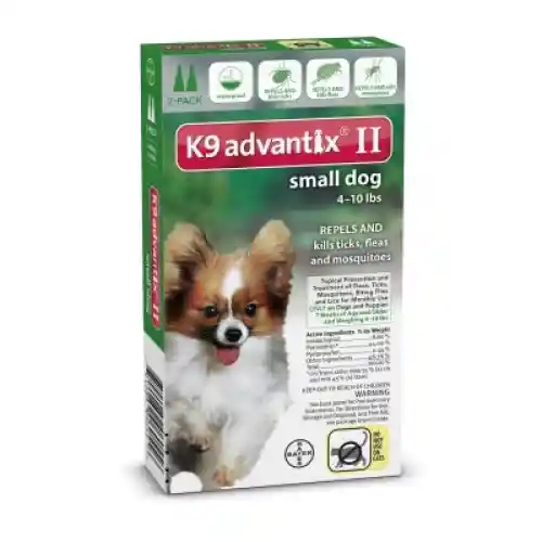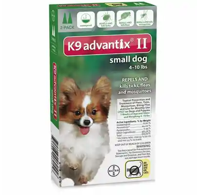 K9 Advantix II is a monthly preventative for dogs that offers comprehensive protection against ticks, fleas, mosquitoes, biting flies, and chewing lice. K9 Advantix II is a top veterinarian-recommended brand because it repels and kills all life stages of fleas (eggs, pupae, larvae, and adult fleas) and ticks (Deer ticks, American dog ticks, Brown dog ticks, and Lone Star ticks). K9 Advantix II kills 98-100 percent of fleas within 12 hours and continues working for one month to prevent infestations. Fleas and ticks are killed on contact with a treated dog, which means that fleas don't have to bite and ticks don't have to attach to die. This helps prevent transmission of flea-borne and tick-borne diseases such as tapeworms, Lyme disease, tick paralysis, ehrlichia, and Rocky Mountain spotted fever. Killing fleas before they bite may also help prevent skin allergies caused by flea saliva. As well, K9 Advantix II repels mosquitoes before they bite, which may help prevent transmission of heartworms. K9 Advantix II protects your pet before parasites have a chance to bite, not after.