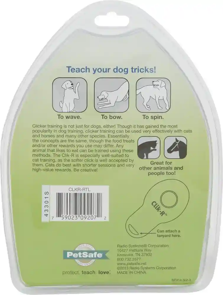 Our hand-held Clik-R™ makes training easy and fun. Teach your pet that a click means a treat is coming, and you’re ready to train nearly anything, from basic obedience commands to tricks and agility training. The Clik-R™ includes a finger strap which makes it more comfortable and easier to hold than box clickers when training your pet.